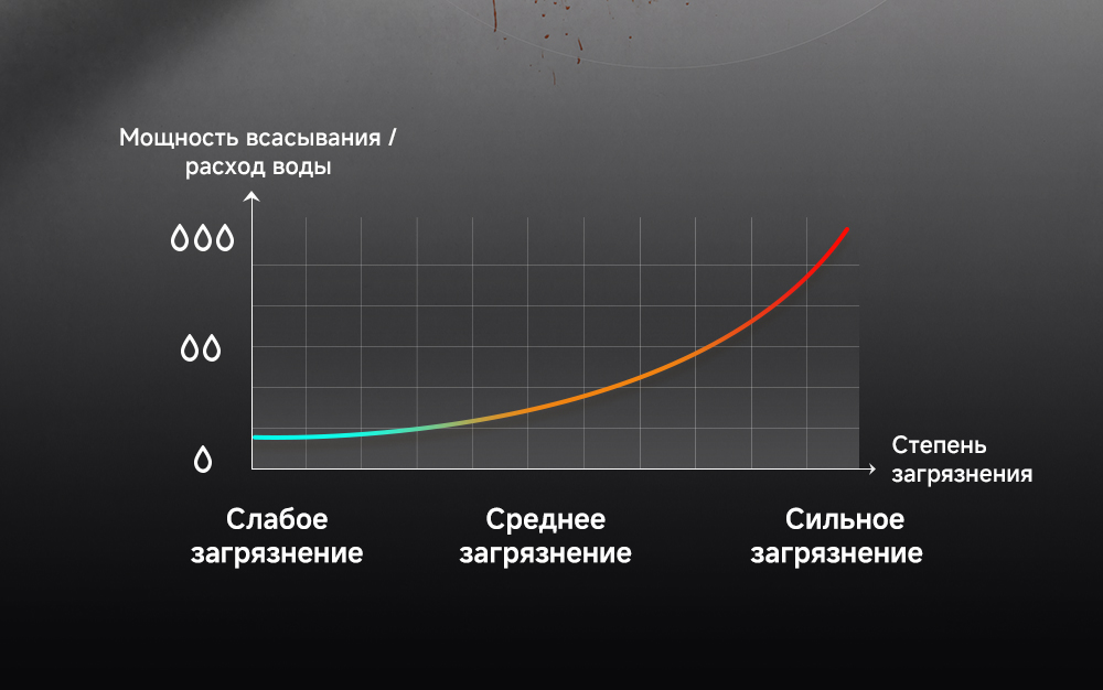 обычный режим, режим впитывания влаги, турбо режим, тихий режим